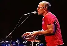 Marcos Suzano (born 1963) is a Brazilian percussionist, famous for playing with many Brazilian and international musicians, such as Gilberto Gil, Nando Reis and Titãs. He was born in Rio de Janeiro. Originally a rock fan, he experienced a carnaval bloco and became passionate about percussion thereafter. He quickly settled on the pandeiro as his primary instrument after witnessing the artistry of Jorginho do Pandeiro of the choro group Época de Ouro.