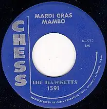 In the early 1950s, The Hawketts were a seven-piece New Orleans R&B group comprising teenage musicians.[4][5] Led by Carroll Joseph, in 1953 they recruited 16-year-old Art Neville (later of the Meters and the Neville Brothers). At the time the band's style was calypso-rumba, modeled after Professor Longhair's style.[5][6] The band was approached by Ken Elliot, aka Jack the Cat, to record the song. Elliot was the disc jockey of WWEZ radio station and knew the local R&B market. Elliot changed some of the original lyrics and kept the song's Latino feel.[1][7] In January 1954 the song was recorded with two microphones in the studio of WWEZ radio station, with Elliot as the recording engineer and Neville on lead vocals. According to band drummer, John Boudreaux, they tried to play the song in a calypso style. The song has a distinct saxophone opening followed by a grunt by the band members. The song was released on Chess Records in 1954 and became a local hit. It has become a standard of the New Orleans Mardi Gras.[1][5]
