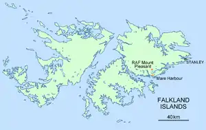 - ↑ Falkland Islands Portal. "Defence". Archived from the original on 26 April 2006. Retrieved 19 June 2006.