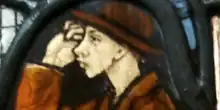 Detail of the west window in Shrewsbury Cathedral depicting the martyrdom of Saint Winefride