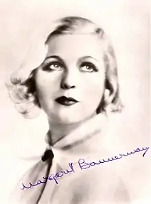 Margaret Bannerman (born Marguerite Grand; December 15, 1896 – June 14, 1976) was a Canadian actress.[1] She is known for her work in the English films The Gay Lord Quex, Lady Audley's Secret and Hindle Wakes. She had a successful career on stage, appearing in revues and light comedy.