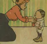 Stephens Mitchell said his sister was a tomboy who would happily play with dolls occasionally, and she liked to ride her Texas plains pony.[19] As a little girl, Mitchell went riding every afternoon with a Confederate veteran and a young lady of "beau-age".[20] She was raised in an era when children were "seen and not heard" and was not allowed to express her personality by running and screaming on Sunday afternoons while her family was visiting relatives.[21] Mitchell learned the gritty details of specific battles from these visits with aging Confederate soldiers. But she didn't learn that the South had actually lost the war until she was 10 years of age: "I heard everything in the world except that the Confederates lost the war. When I was ten years old, it was a violent shock to learn that General Lee had been defeated. I didn't believe it when I first heard it and I was indignant. I still find it hard to believe, so strong are childhood impressions."[22] Her mother would swat her with a hairbrush or a slipper as a form of discipline.[19][15]: 413