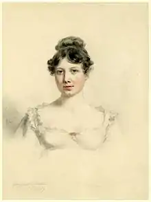 In 1812, one of Carpenter's copies of the head of a boy was awarded a medal by the Society of Arts, who awarded her another medal in 1813, and a gold medal in 1814.[3] She went to London in 1814, and soon established her reputation as a fashionable portrait painter.[1] She exhibited a portrait of Lord Folkestone at the Royal Academy in 1814, and a picture entitled 'The Fortune Teller' at the British Institution. She exhibited regularly at the Royal Academy between 1818 and 1866.[2] Her painting The Lacemaker was on display at the 1857 Manchester Art Treasures exhibition.[4] She also exhibited at the British Institution and at the Suffolk Street Gallery.[2]