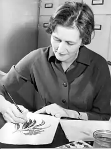 In 1957 she was commissioned to prepare a set of floral designs for Australian postage stamps.[3]