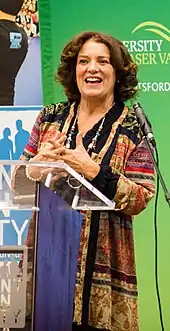 Margaret Joan Trudeau (née Sinclair, formerly Kemper; born September 10, 1948) is a Canadian activist.[1] She married Pierre Trudeau, the 15th prime minister of Canada, in 1971, three years after he became prime minister. They divorced in 1984, during his final months in office. She is the mother of Justin Trudeau, the 23rd and current prime minister of Canada, of the journalist and author Alexandre "Sacha" Trudeau,[2] and of Michel Trudeau (now deceased). She is the first woman in Canadian history to have been both the wife and the mother of prime ministers. Trudeau is an advocate for people with bipolar disorder, with which she has been diagnosed.