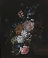 In the 20 page biography of Jan van Huysum written by Jan van Gool, the only woman he mentioned is Haverman who Van Gool claimed had been allowed to become Van Huysum's only pupil.[2] Van Huysum later believed she became his pupil under false pretenses and that he had been "sweet-talked" into taking her on by her father the schoolmaster.[2] Haverman became an embarrassment to Van Huysum when she was admitted to the prestigious Académie royale de peinture et de sculpture in 1722, because she began to sell her works and he was very defensive of his own public image and he was afraid her clever copies would bring him discredit.[2] This story indicates that Van Huysum was willing to let his female relatives assist him but avoided the help of male pupils for fear of revealing his technique.