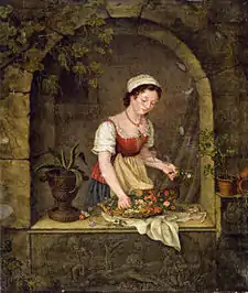 Her works were exhibited in several cities. From 1826 to 1843, she was a regular participant in Amsterdam's Exhibition of Living Masters. In 1834, she received an award from the Academie Minerva for her painting Meisje met bloemen (Girl with Flowers). In 1858, she was the first woman to become an honorary member of the "Genootschap Kunstliefde", an artists' society in Utrecht.[1] In her later years her eyesight declined. By 1864, she was unable to paint and devoted herself entirely to art collecting. She also used her collection to present lectures and discussions at Arti et Amicitiae, the Pulchri Studio and Pictura in Dordrecht.[1]