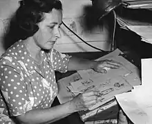 ![]() Marge working on a sketch of her most famous character, Little Lulu | |