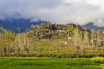 Marghuzar, or Marghazar is a hill station located in the Swat District of the Khyber Pakhtunkhwa province of Pakistan, and is 13 kilometers away from Saidu Sharif. Marghuzar, translated as "green land", contains green valleys, cold springs, and mountains, including the Elum Ghar mountain.[1] In 1940, the then Wali of Swat, Miangul Abdul Wadud, decided to build a summer residence there for himself which became the summer capital of Swat. The palace was named Sufed Mahal, translated as The White Palace. The palace has since been converted into a hotel.[2][3] Marghuzar has a 200-year-old colossal chinar tree, which serves as a canopy for visitors. There is also a middle school and one primary school for boys and girls each, but there aren't any hospitals or clinics.