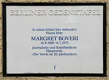 - ↑ Heike B. Görtemaker: Ein deutsches Leben. Die Geschichte der Margret Boveri, München, 2005, S. 313