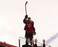 Gáborík saluting the crowd following his five-goal game against the Rangers in 2007.