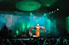 Boine sings in an adaptation of traditional Sámi style,[12] using the "joik" voice, with a range of accompanying instruments and percussion from indigenous traditions from around the world.[13][14] For example, on Gula Gula the instruments used include drum, guitar, electric bass clarinet, dozo n'koni, gangan, udu, darbuka, tambourine, seed rattles, cymbal, clarinet, piano, frame drum, saz, drone drum, hammered dulcimer, bouzouki, overtone flute, bells, bass, quena, charango and antara.[15]