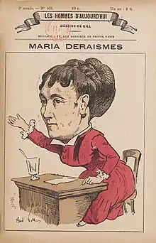 Maria Deraismes (17 August 1828 – 6 February 1894) was a French author, Freemason, and major pioneering force for women's rights.