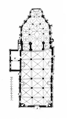 Around 1300, a reconstruction of the church was begun in late Gothic style to meet the increased demands of the city of Bozen, which had grown intensely both in terms of population and territory. The new church was completed in 1519 with the construction of the tower in late Gothic style, designed by the Augsburg master mason Burkhard Engelberg and finished by Hans Lutz of Schussenried.[6] From the same period is the late Gothic pulpit of sandstone with the reliefs of the four Church Fathers and the four Evangelist portraits. The pulpit was partially destroyed by Allied bombardments of 1943–1944 and rebuilt in 1949.[7]