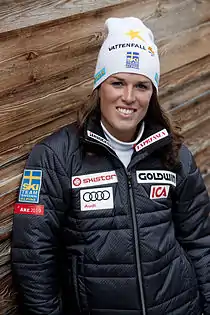 She made her debut at the Winter Olympics in 2006, where she finished tenth in the giant slalom.[1] At the 2010 Winter Games, she finished fourth in the slalom, and at the 2014 Winter Olympics she was sixth in the giant slalom. She also won seven Swedish championship titles: five in slalom, one in giant slalom and one in combined.[2]