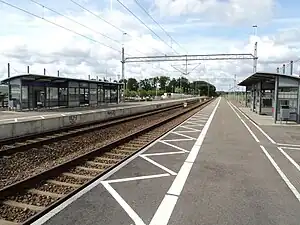 Maria Station is a railway station for commuter trains located on the West Coast Line in the northern parts of Helsingborg, Sweden.[1] The station was inaugurated in 1999 and currently consists of two platforms and two tracks. The local trains (Pågatåg) serve the station. It is one of three passenger railway stations located in the city of Helsingborg, along with Helsingborg C and Ramlösa Station, of which it is the northernmost situated railway station of the city.