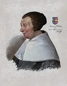 Mayken Lubbert van Pallaesdr.[note 1] (1587 – 23 October 1664), commonly known as Maria van Pallaes,[note 2] was a Dutch philanthropist who established the Maria van Pallaes houses in the city of Utrecht. They consist of 12 almshouses and a refectory, together with a hofje or courtyard garden, to be used by the city's poor. After her death, the buildings were placed under the control of the Maria van Pallaes Foundation and another 28 almshouses were later built using her inheritance. The original 12 houses and refectory are now owned by the Utrecht Monument Foundation and are a Dutch national heritage site.