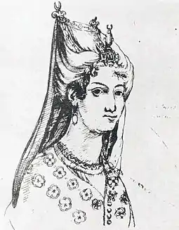 ![]() Mariam Dadiani. A drawing from the album of the contemporaneous Roman Catholic missionary Cristoforo Castelli, who lived in Georgia from 1627 to 1654. | |