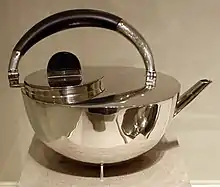 Brandt's tea set designs are characteristic of the early phases of modernism. Form predominates over ornament and there is a clear sense of at least symbolic compatibility with modern mass-production technology.[15]