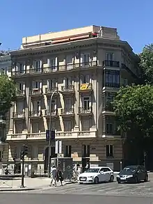 Belmás advised Fernando Navarro in his construction of the Palacete Rodriguez Quegles in Las Palmas, Gran Canaria, a small Art Nouveau place.[15] Navarro completed the proposed design by Belmás in 1900.[16] In the 20th century, turning away from his more idealistic concepts, he executed most of his well-known buildings in variants of the eclectic style. He designed residences for the Marquis de Valdeterrazo in calle Hortaleza (1902–1904), for the Mitjans family on calle Velázquez (1904–1905) and on the Paseo de la Castellana (1907), for Luis de la Mata on Felipe II avenue (1905–1909) and for José Rivas on Calle Lagasca (1911–1914). The last was completed by the architect Francisco Reynals.[1]