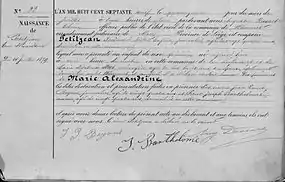 Birth certificate of Marie Alexandrine Petitjean - 14 July 1879