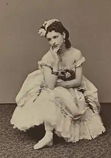 She made her New York City debut came at Niblo's Garden on Monday, September 10, 1866.[2] She then was the prima ballerina in The Black Crook at the same theatre, which premièred two days later. She appeared in Sylvia by Léo Delibes at the Metropolitan Alcazar concert hall on July 15, 1882.[3] In August 1901, Bonfanti performed with Rita Sangalli at the Metropolitan Opera House, during the inaugural season of ballet at the New York City venue.[4] Her talent for expressionist dancing and her private life were covered widely from the mid-1860s until the early 20th century.
