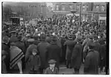 3. "Women in Bread Riot At Doors of City Hall. With Babies in Arms They Cry for Cheaper Food. Dispersed by Mounted Police. Police Fail to Break Rush. Mrs. Harris Makes Speech. Marie Ganz Arrested" (PDF). New York Times. February 21, 1917. Retrieved 2015-02-13. Four hundred east side mothers, many Carrying babies and all shouting 'We want food for our children!' poured from Rutgers Square through East Broadway and the Bowery to City Hall about 11 o'clock yesterday morning and ...