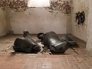 The heat of the blaze in 1942 dislodged large sections of plaster, revealing the original decorative paintings of the Middle Ages, some of which were documented by photograph during the Second World War.[5] In 1948 the task of restoring these gothic frescos was given to Dietrich Fey. In what became the largest counterfeit art scandal after the Second World War, Fey hired local painter Lothar Malskat to assist with this task, and together they used the photographic documentation to restore and recreate a likeness to the original walls. Since no paintings of the clerestory of the chancel were available, Fey had Malskat invent one. Malskat "supplemented" the restorations with his own work in the style of the 14th century.[6] The forgery was only cleared up after Malskat reported his deeds to the authorities in 1952, and he and Fey received prison sentences in 1954.[7] The major fakes were later removed from the walls, on the instructions of the bishop.[8]