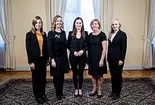 The Marin Cabinet was the 76th government of Finland. It was formed following the collapse of the Rinne Cabinet and officially took office on 10 December 2019.[1][2] The cabinet headed by Sanna Marin consists of a coalition formed by the Social Democratic Party, the Centre Party, the Green League, the Left Alliance, and the Swedish People's Party.[3]