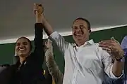 Silva was a member of the PT until 2009, and served as a senator before becoming Minister of the Environment in 2003. She ran for president in the 2010 Brazilian elections as the candidate for the Green Party, coming in 3rd with 19% of the first-round vote.[2] In April 2014, Eduardo Campos announced his candidacy for the fall 2014 presidential election, naming Marina Silva as his vice presidential candidate.[3] After Campos's death in a plane crash on August, she was selected to run as the Socialist Party's candidate for the presidency, winning 21% of the vote and coming in 3rd.[4][5] She again ran for president in the 2018 election, this time as the nominee for the Sustainability Network, and finished 8th place with 1% of the vote.