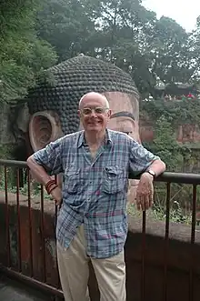 Mario Biondi at the huge 71-metre Buddha in Leshan, Sichuan, China, July 2006 (Selfportrait)
