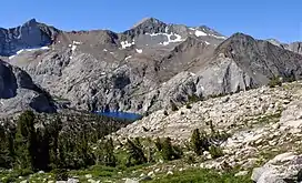 Marion Peak is a remote 12,719-foot-elevation (3,877-meter) mountain summit located in Kings Canyon National Park, in Fresno County of northern California, United States.[3] It is situated on Cirque Crest which is west of the crest of the Sierra Nevada mountain range, 2.13 miles (3.43 km) northeast of State Peak, and 2.6 miles (4.2 km) northwest of Arrow Peak, the nearest higher neighbor.[1] Topographic relief is significant as the north aspect rises 2,400 feet (730 meters) above Marion Lake in one mile, and the southeast aspect rises 3,500 feet (1,100 meters) above South Fork Kings River in less than two miles.