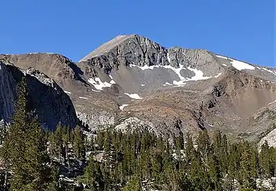 The first ascent of the summit was made July 22, 1902, by Joseph Nisbet LeConte and Curds Lindley via the east slope.[4] They climbed it in order to scout a possible route to the northern Palisades.[5] The class 3 Northwest Ridge was first climbed August 11, 1945, by Art Reyman.[6]