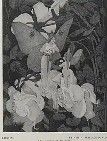 Wallace Dunlop was born at Leys Castle, Inverness, Scotland, on 22 December 1864, the daughter of Robert Henry Wallace Dunlop and his second wife, Lucy Wallace Dunlop (née Dowson; 1836–1914).[5] Although commonly believed to have studied at the Slade School of Fine Art in London, there is no official record of Wallace Dunlop having attended school there. Her paintings were displayed at the Royal Academy in 1903, 1905 and 1906. In 1899, she illustrated Fairies, Elves, and Flower Babies and The Magic Fruit Garden in art-nouveau style.[6][7]