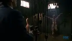 ![]() In one of the episode's memorable scenes, Roland controls Amanda's corpse like a marionette through a system of ropes and pulleys | |
