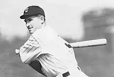 Koenig returned to St. Paul in 1924 and though he spent the entire season with the team, he played just 68 games for them.[5] At the end of the season, the Saints advanced to the Little World Series, where they faced the International League's Baltimore Orioles. Having had limited playing time, it was in Game 5 where he finally had the opportunity to prove himself.[2] Danny Boone, St. Paul's starting shortstop, injured his ankle during batting practice.[3][6] Although the rules at the time stipulated the Saints could temporarily utilize a player from another American Association team to replace Boone, the Orioles objected[2] and the National Association president ruled Koenig constituted an ample substitute for Boone. He proved to be exactly that when he scored the Saints' only run via a home run. He finished the Little World Series with a .429 batting average and 2 home runs, including one hit off Lefty Grove.[7][6] His stellar performance in the series resulted in at least seven MLB teams seeking to acquire him in the offseason.[3] However, he stayed with the Saints for the first part of the 1925 season before he was traded on May 29 to the New York Yankees in exchange for Fred Hofmann, Oscar Roettger, $50,000 ($834,345 in current dollar terms) and a player to be named later (Ernie Johnson).[1][8]