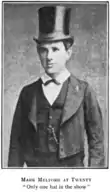 During his twenties he joined a travelling portable theatre company, or booth, in the North Country of England. His adventures over the fifteen months he spent with the booth theatre are recounted in his book Life in a Booth and Something More.[1]: 12 Later he worked in the theatre with Charles Rice, Charles James Mathews, Mrs Rousby, Walter Speakman,[7] Eloise Juno, Willie Edouin, Alice Atherton,[8] and Oswald Stoll,[1]: 187ff theatre manager, and the co-founder of the Stoll Moss Group theatre company. He advertised himself in his early career as an actor able to play the 'heavy lead' or villain, and burlesque, or 'character' parts.[9] He was known affectionately in his hometown Portsmouth area, by the soubriquet "Rhymeo", and the Portsmouth Evening News noted his special rapport with the audience: "a mutual good feeling appears to exist between the performer and the public from the moment Rhymeo's genial countenance smiles upon them."[10] In 1898 The Stage wrote "It is well nigh impossible not to laugh when Mr. Mark Melford occupies the stage, his odd grimaces, quick and extraordinary gestures, quaint antics, and generally comic behaviour make him a most droll comedian."[11]