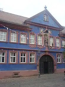 The Franck-Haus is a richly adorned townsman's house from the Baroque period, built in 1745, and is one of the town's most important sights.[3]:49 The building master was the wine merchant and salesman Franz Valentin Franck (1702–1777). Since 1987, the house has been under the town's ownership. From 1994 to 1998 it was renovated, for which the façade's smalt-blue colour, which at the time the house was built was the most expensive colour, was reconstituted. Today the house is used for exhibitions.[4]