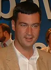 Söder has been a member of the Landtag, the state parliament of Bavaria, since 1994. From 2003 to 2007 he was secretary general of the CSU party; in this capacity, he worked closely with then Minister-President and party chairman Edmund Stoiber. During his time in office, he was also part of the CDU/CSU team in the negotiations with the SPD on a coalition agreement following the 2005 federal elections,[4] which paved the way to the formation of Chancellor Angela Merkel's first cabinet.