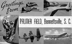 The airport opened on 8 October 1941 as Bennettsville Airport. It was renamed as Palmer Field in 1943 in honor of Capt. William White Palmer (1895-1934), Bennettsville native and World War I pilot. Palmer served in the 94th Aero Squadron in France during the war, shooting down three enemy aircraft. He was also awarded the Distinguished Service Cross and French Croix de Guerre for gallantry in aerial combat.[3]
