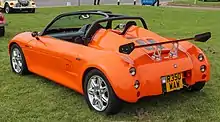 As a complete change from the retro looks of the previous models, the 5EXi is a modern two seat, mid engined sports car using Honda Civic, Rover K-series engines or Audi 1.8T engine . The car is built up around a space frame on which are fastened glass fibre body panels.