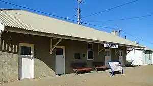 ![]() The former Marree railway station building, with an explanatory sign outside, in 2013 | ||||||||||||||||