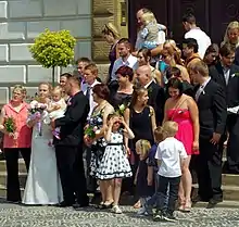 Marriage in the Czech Republic can be performed in a religious or civil ceremony. It may be performed between Czech citizens, a Czech citizen and a foreigner, or two foreign nationals. Both partners must be at least 18 years old.[1] Same-sex marriage is not currently recognized in the Czech Republic as of 2020.[2]