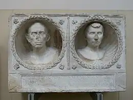 - ↑ Marble funerary relief of Lucius Antistius Sarculo and Antistia Plutia