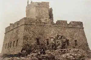 The only known photograph of the tower was taken by the photographer Michele Farrugia in around 1910.[6] By this time, the tower was partially in ruins, and part of the central vedette had already collapsed.[7] This tower was demolished by the British military in 1915, and a wireless station was built in its place.[7][4] The station was pulled down four years later in 1919.[7]