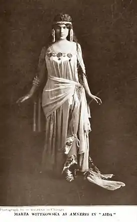 As Marta Wittkowska, she sang for Metropolitan Opera House in Philadelphia, the Met in Manhattan and opera companies in St. Louis, Syracuse, Chicago, Cincinnati and Detroit. In 1913 Wittkowski returned to the Covent Garden Theatre to play the alternate lead in the Raymond Rôze opera Joan of Arc and the Wagnerian roles Isolde and Ortrude. [7][12][13]
