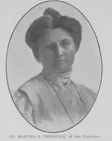Martha G. Thorwick (1863 — November 16, 1921) was a Norwegian-born American clubwoman and medical doctor based in San Francisco, California, whose personal life was the subject of scandal and headlines.
