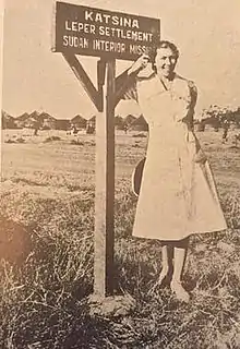 Wall conducted her most impactful missionary work at the Katsina Leper Settlement. She acted as a doctor for hundreds of adults and children with leprosy, treating them with medicine, recording their changing conditions daily, and providing them with emotional and spiritual support. She learned more about the science behind leprosy and novel treatment approaches. In addition, Wall created the aforementioned (see: Service subheading) Children's Welfare Center so that the babies and toddlers of parents with leprosy could live near their parents without risk of contracting the disease and would be taken care of regardless of their parents' health. She prepared meals for, bathed, and medically treated hundreds of these babies and toddlers.[5] At Katsina, Wall also learned more about the impact of Christianity and her mission, SIM, on local Nigerians and developed public health philosophies.[6]