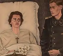 On 25 March 1922, according to the testimony of her sister Alice, Robin had a personal vision of the Virgin Mary.[20] Following the testimonies gathered by the 1986 diocesan enquiry, this vision was followed by others.[20] She reported that Christ appeared to her on the night of 4 December 1928. She confided about this vision to Père Faure, her parish priest, then took the decision to give her life entirely to God and to unite herself with his sufferings through prayer and love.[21] From then on, her spiritual life was more and more centered on the Passion of Christ and the Eucharist. She received regular visits from several local priests.[22]