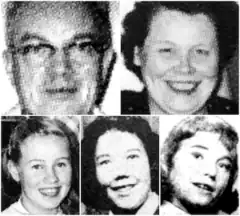 In the late morning of December 7, Kenneth and Barbara left their home with their daughters Barbie, Susan, and Virginia, in their 1954 cream and red-colored Ford Country Squire station wagon.[6] Barbie, the eldest daughter, was a freshman at Grant High School.[7] The family's eldest child, a son named Donald aged 28 at the time, was in the United States Navy and stationed in New York at the time.[6][4]
